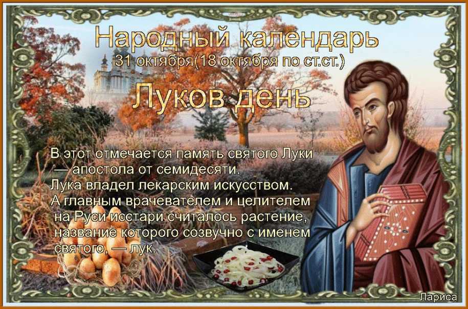 31 октября (18 октября по старому стилю) – Голодный Лука, луков день, Лука, день Луки.