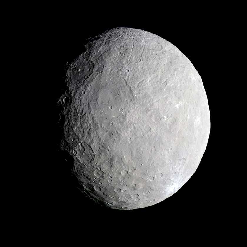 Поверхность Цереры состоит из пород глинистого происхождения и кусков льда. Под коркой находится толстый ледяной слой и маленькое ядро. Разряженная атмосфера представляет собой водяной пар. Естественных спутников у Цереры нет.