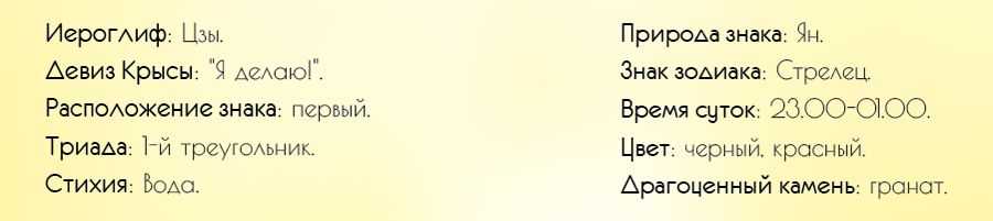 Крыса любезна, великодушна, вежлива. Она всегда добивается того, чего хочет, даже если для этого приходится манипулировать другими людьми. Чаще всего вокруг всегда находятся интересные и влиятельные люди, с радостью готовые помочь Крысе и воспользоваться своим авторитетом.