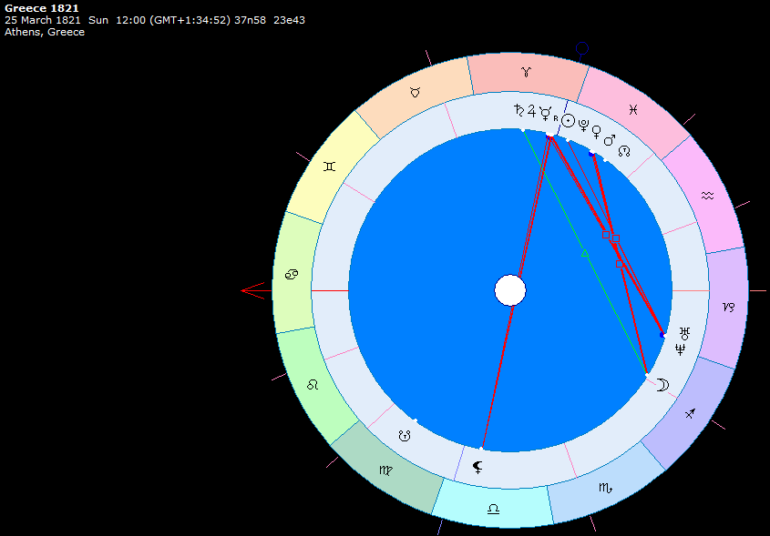 Центр православного христианства. Гороскоп построен на 25 марта 1821 года – начало восстание греков против турок.