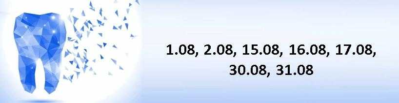 Когда все летние заботы остались позади, закончился дачный сезон и отпуска, самое время заняться зубами. Но, планируя лечение или протезирование, изучите наиболее благоприятные даты.
