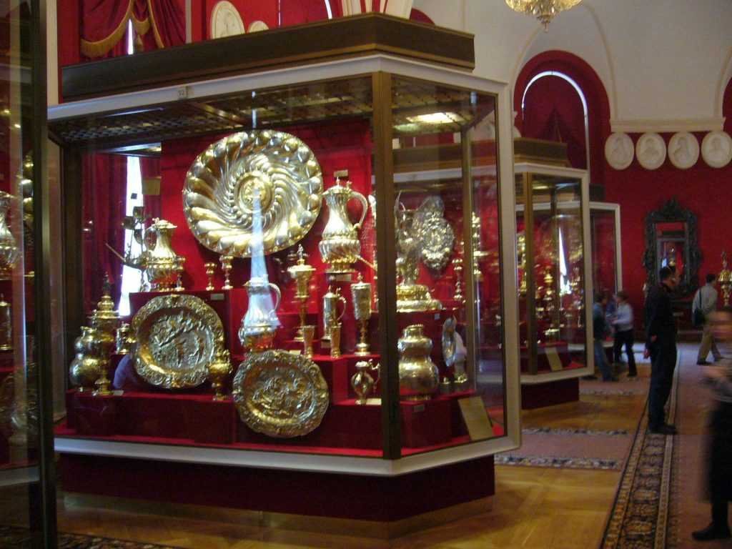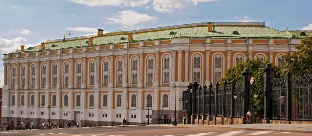 Расположенная на территории Кремля Оружейная палата является настоящей сокровищницей, в которой собраны уникальные исторические экспонаты: драгоценности царских семей, подарки от представителей иностранных делегаций и т. д.