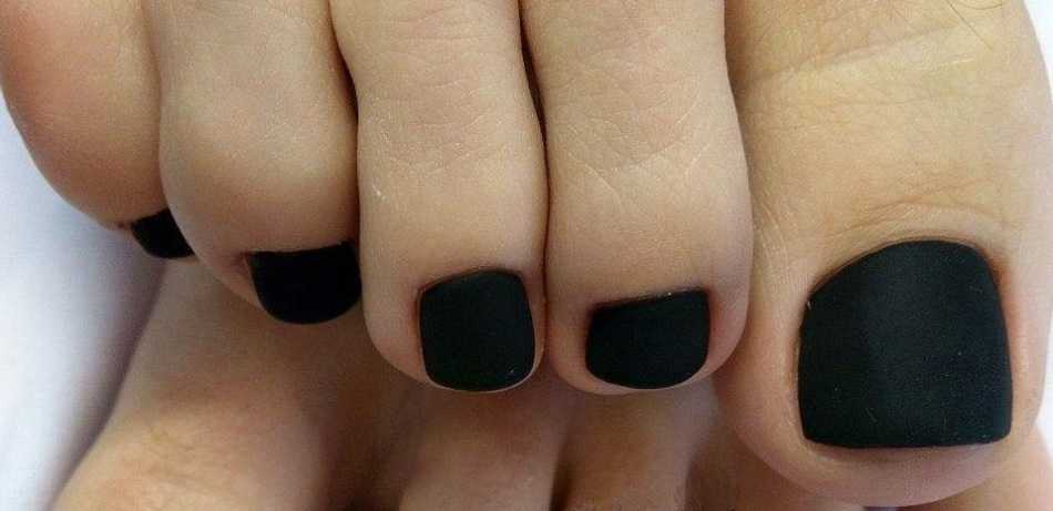 Матовый черный педикюр