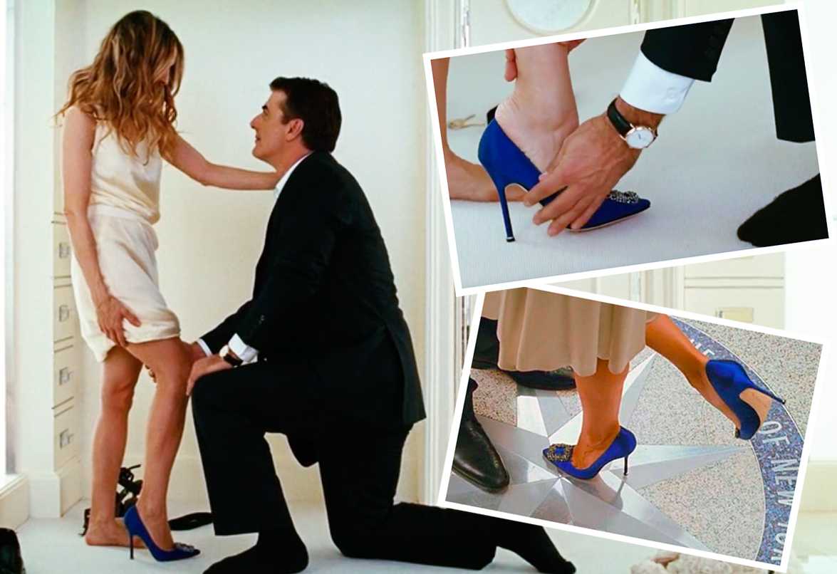Или легендарную пару голубых лодочек Hangisi с пряжкой украшенной кристаллами, в которых Кэрри вышла замуж за Мистера Бига. Сейчас модель Hangisi является самыми узнаваемыми туфлями Manolo Blahnik.