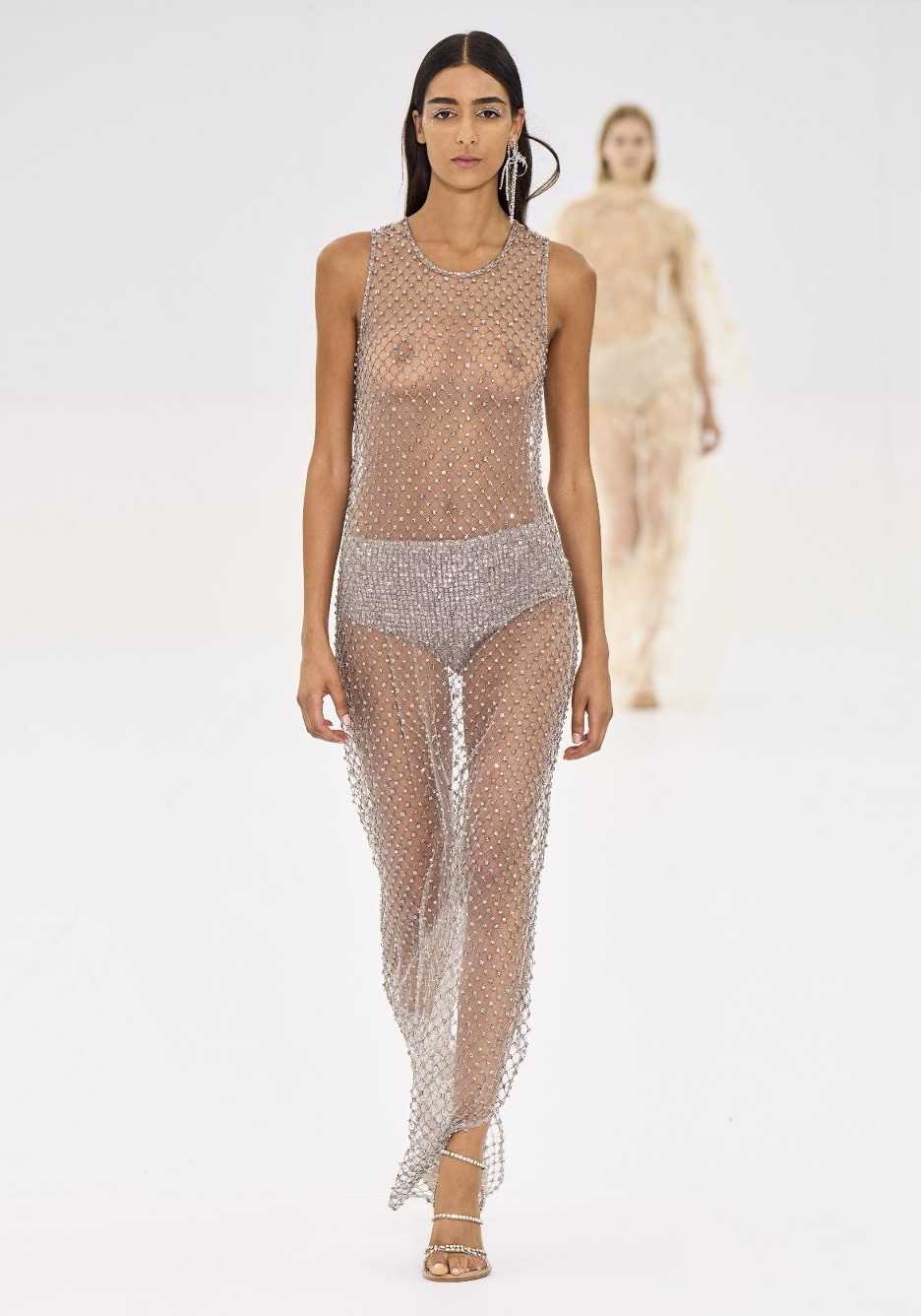 Также, стоит обратить внимание на самый явный тренд этой недели — topless и полупрозрачные материалы.