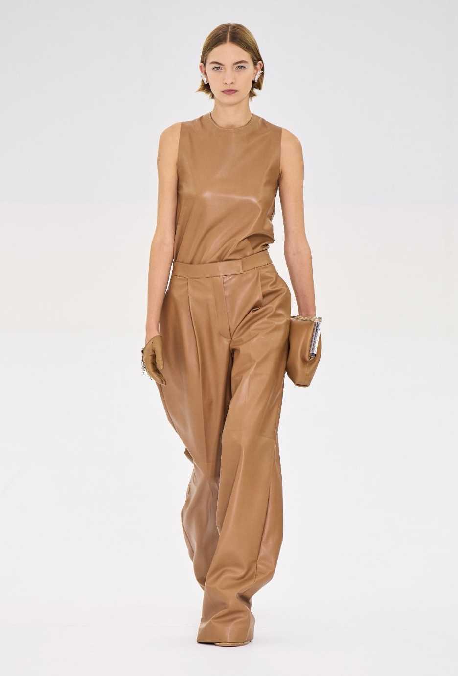 Бренд не устоял от использования фирменных оттенков и задал тон на осенне-зимний сезон в виде total leather.