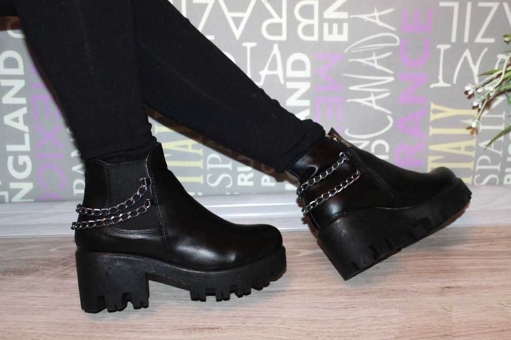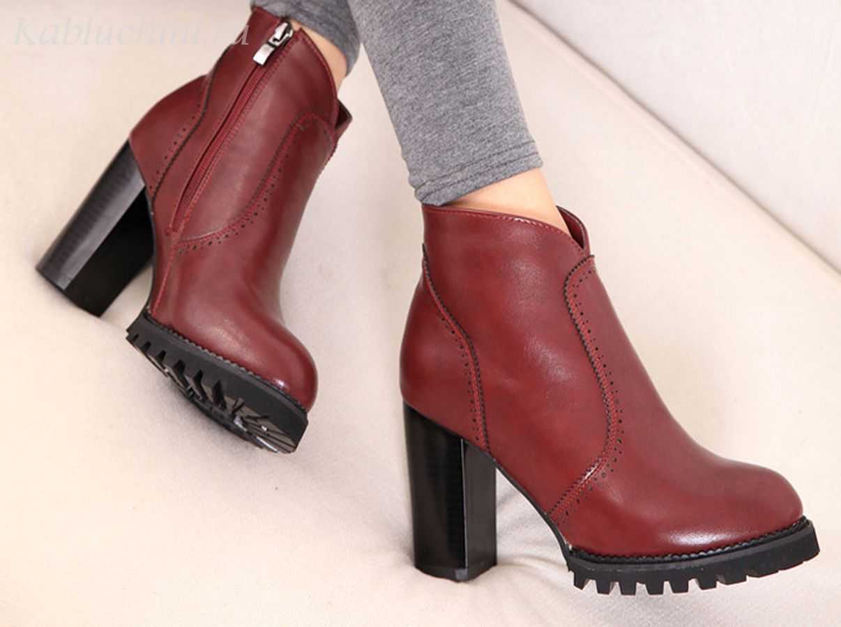 Сделать модель на толстой подошве более стильной поможет массивный каблук. Такие ботинки выглядят женственно, модно, а вместе с тем, в них будет комфортно и удобно. Но, несмотря на то, что эта обувь сочетается с офисной одеждой, не стоит её носить на деловые переговоры и официальные встречи. Все-таки, смотрятся подобные ботинки скорее неформально, чем традиционно.