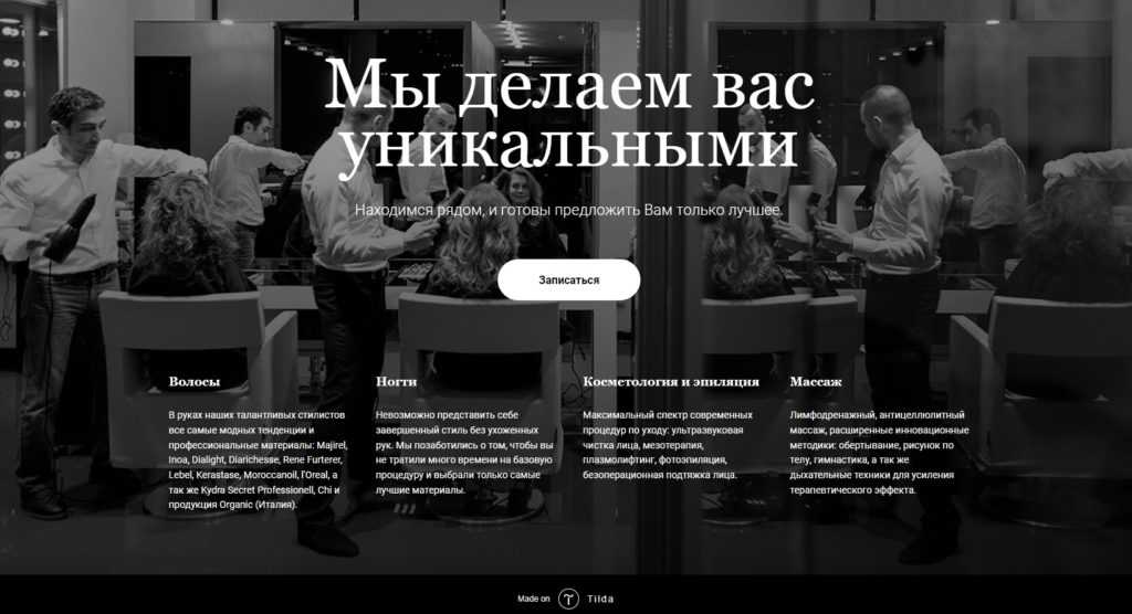 Отличительные черты заведения – профессионализм мастеров, высокое качество предлагаемых услуг и особенное внимание к каждому клиенту. Здесь можно улучшить состояние кожи, позаботиться о красоте ногтей и волос, и по-настоящему расслабиться