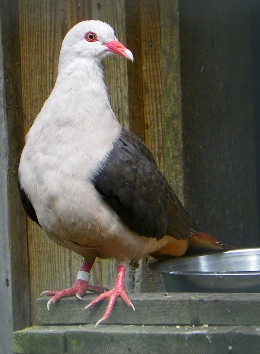 Эти голуби также носят название фруктовых. Это связано с необычным окрасом. Передняя часть головы ярко-розовая, остальная же ее часть — серая. Все тело зеленое, но в крыльях и хвосте просвечиваются синие перья.