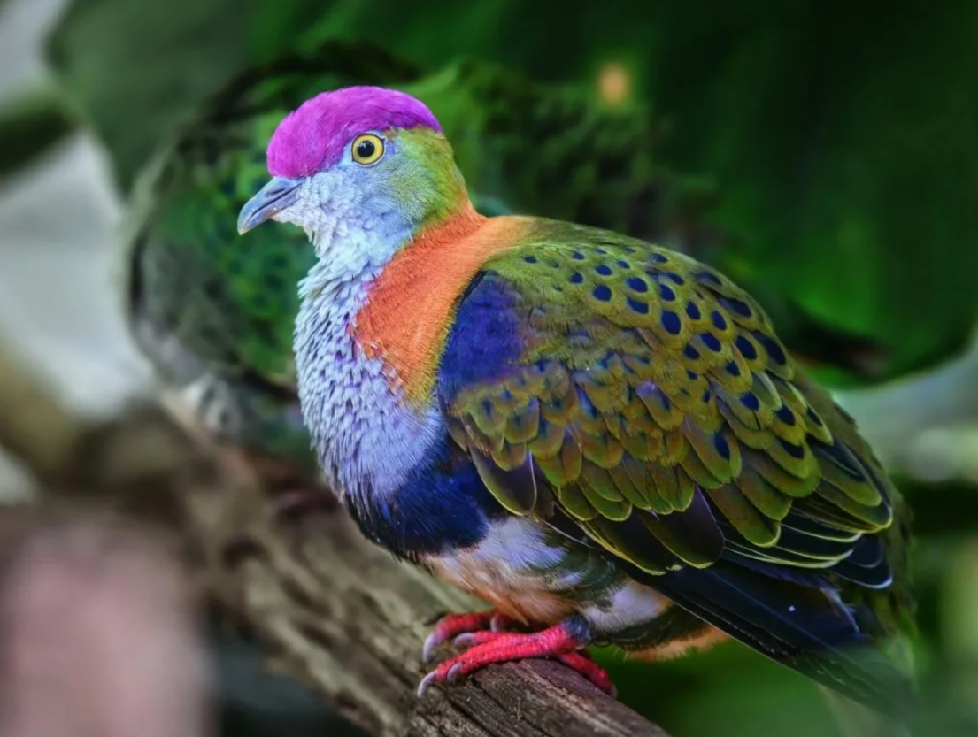 Марианские голуби отличаются зелеными крылышками и ярко-розовым пятном на голове. А еще у них красивая голубая грудка и фиолетово-оранжевые перышки на животе. Они любят обитать в верхних этажах тропического леса.