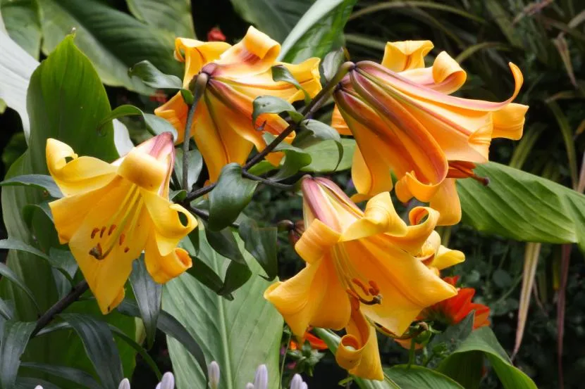 - Генри — этот сорт мы сегодня уже упоминали, и, как известно, он участвовал в селекции многих сортов! Вырастает растение до 2,5 метров, а сам сорт известен с конца 19 века. На длинных цветоножках располагаются метелковидные соцветия из 10-20 цветков поникшего вида. Форма цветков чалмовидная (слабая), окрас оранжевый, лепестки покрыты темным крапом. Растение морозостойкое, наделено приятным ароматом. Цветение — с августа по сентябрь.