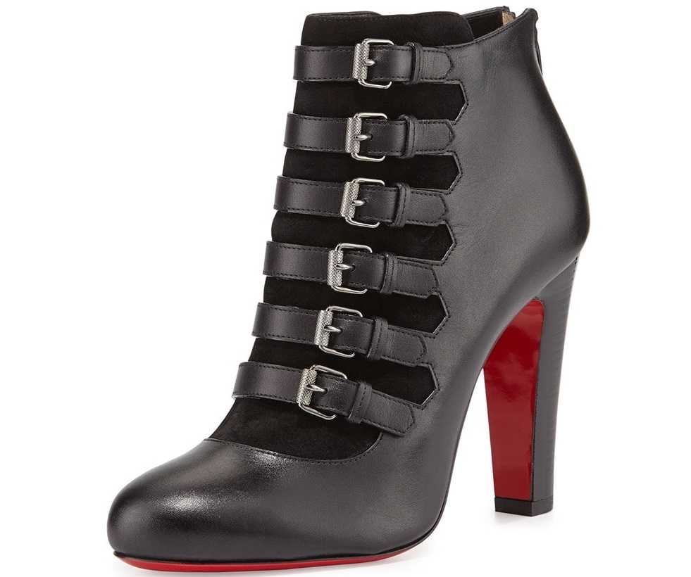 - Ботильоны в стиле лабутенов. Эффектные ботинки подходят для любой погоды, отличаются наличием голенища, доходящего до щиколотки, украшенного самыми различными элементами декора (мехом, замками, шнурками).