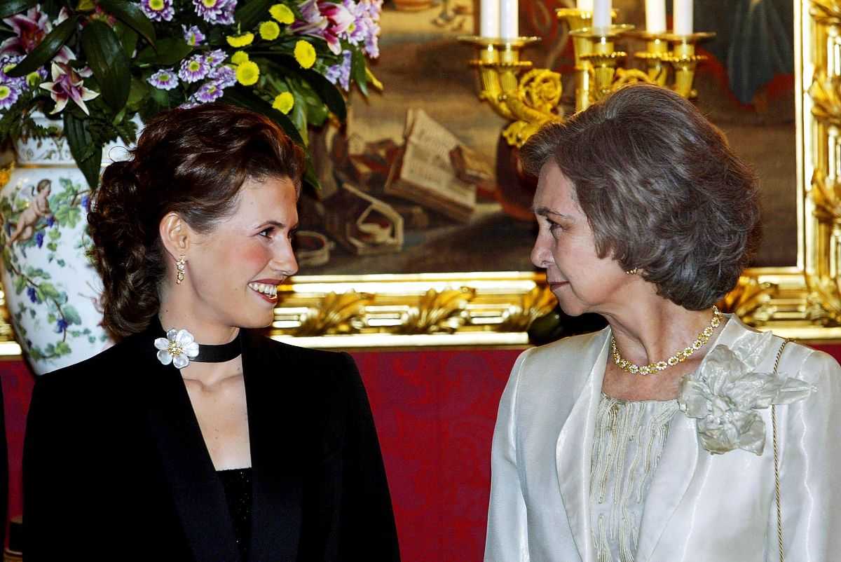 Асма Асад беседует с Королевой Испании Софией во время двухдневного официального визита в Испанию, Мадрид, 1 июня 2004 г.