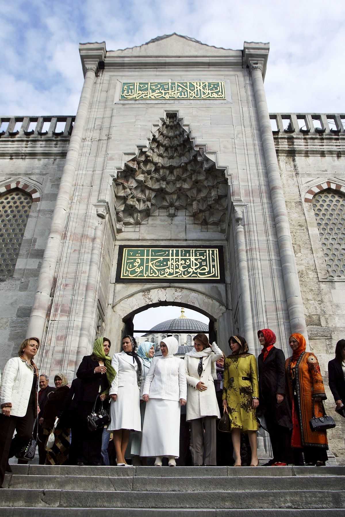 Асма Асад и Эмине Эрдоган во время визита в мечеть Султана Ахмеда в Стамбуле, 28 апреля 2006 г.
