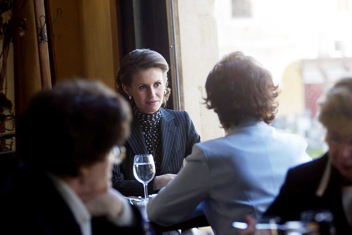 Асма Асад сидит с первой леди Ливана Андре Лахуд в ресторане в центре Бейрута, 8 марта 2004 г.
