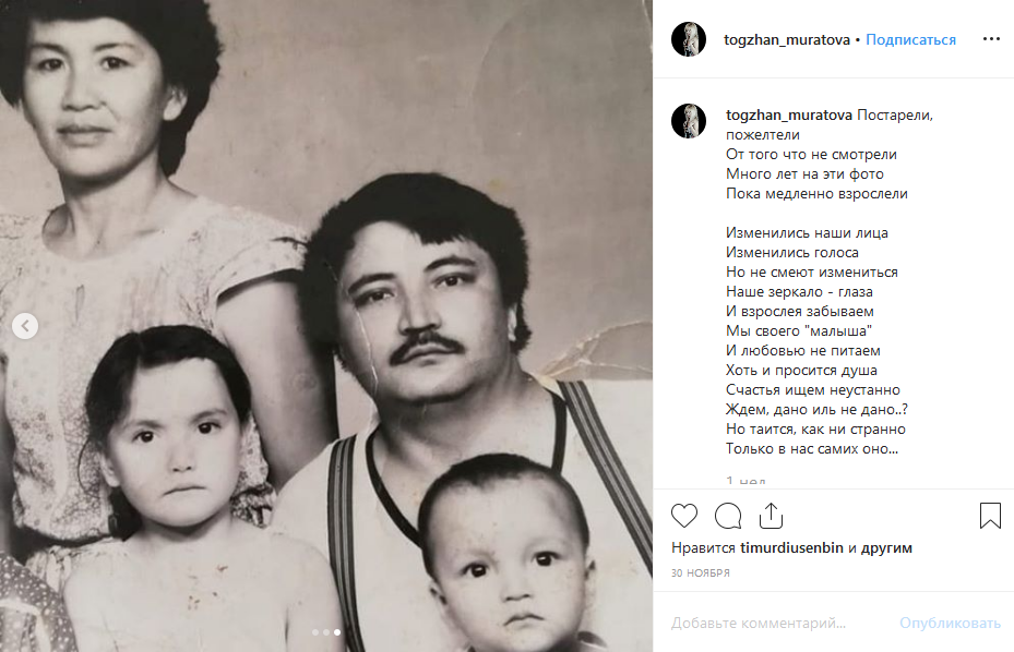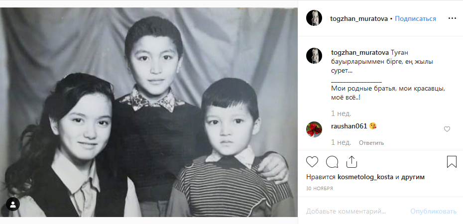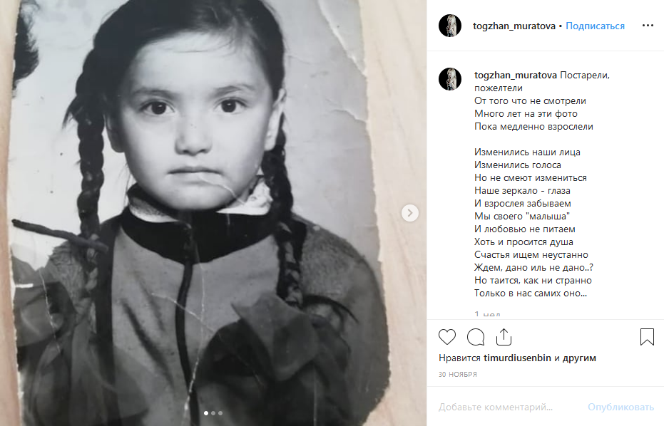 Например, в Инстаграме певицы есть видеозапись, где она с подругами поет чудесную национальную песню, и к фото приписка: «Подружки, давайте вспомним, как часто и душевно мы вот так, втроем, пели!» Это видео означает, что уже в детстве будущая исполнительница своих синглов и талантливых каверов проявляла музыкальный талант.