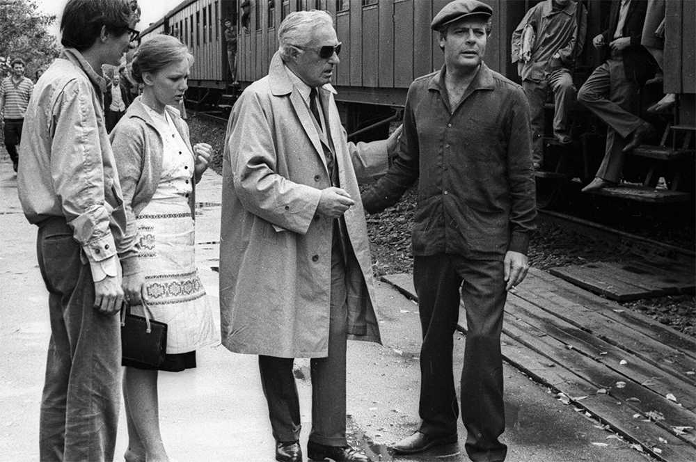 Итальянский режиссер Витторио де Сика (2-й справа) и актеры Марчелло Мастрояни (справа) и Людмила Савельева во время съемок фильма «Подсолнухи». 1969 год. Фото: РИА Новости