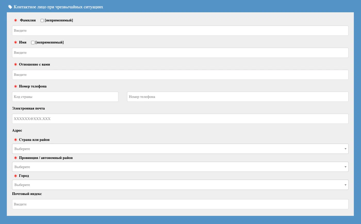 Также вам необходимо указать контактные данные доверенного лица на случай экстренных ситуаций.