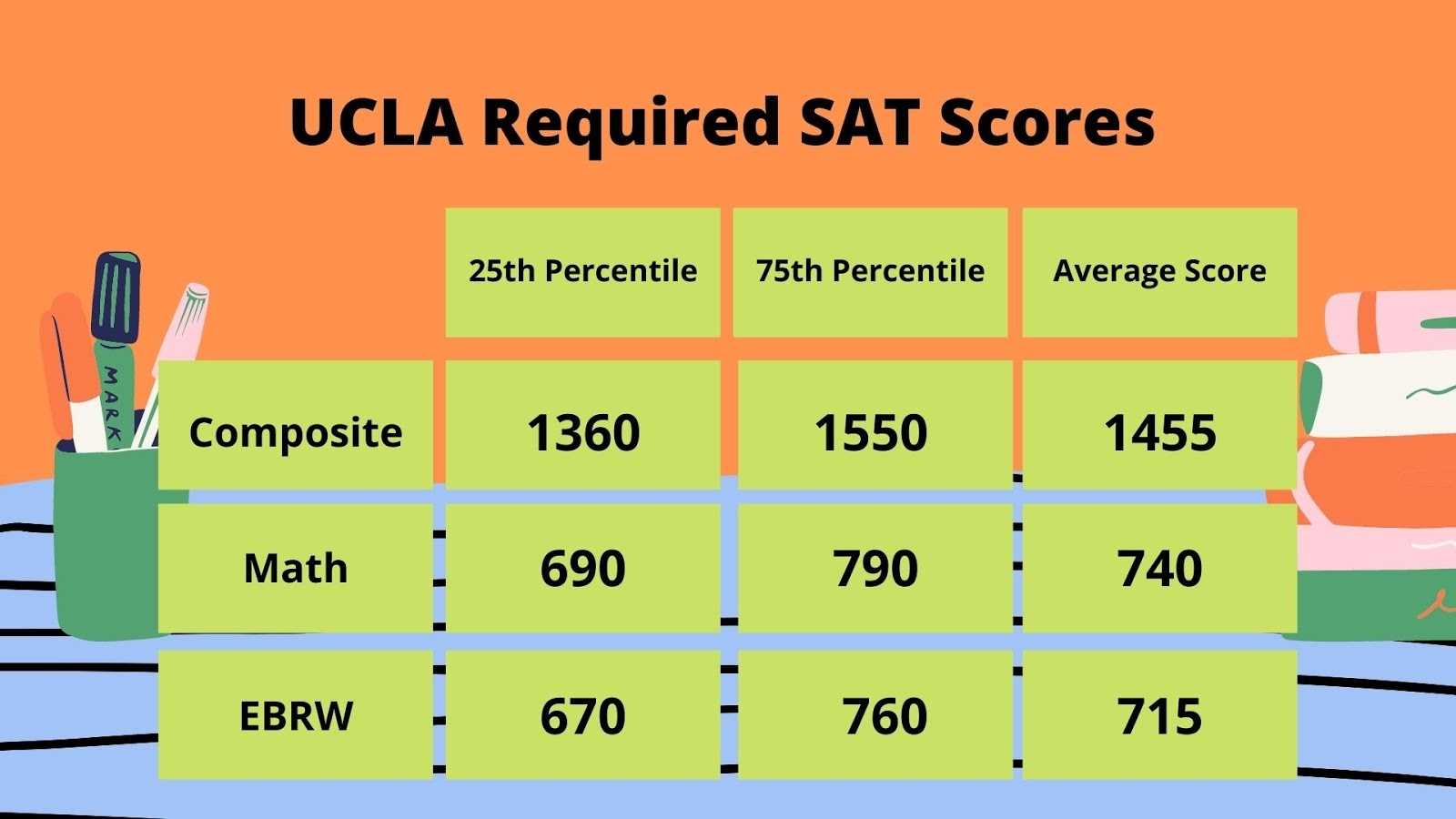 Требования к баллу SAT в UCLA высокие. 25-й процентильный балл SAT в UCLA составляет 1360. Это означает, что только менее 25% принятых студентов имеют балл ниже 1360. 75-й процентильный балл SAT в UCLA составляет 1550. Это означает, что около 75% принятых студентов набрали меньше 1550 баллов. Средний (50-й процентиль) балл SAT в UCLA, который мы смогли найти, составляет 1455. Вы также можете стремиться к процентильным баллам по обоим разделам отдельно. Для математики 25-й процентиль составляет 690, а 75-й процентиль – 790. Для EBRW 25-й процентиль и 75-й процентиль составляют 670 и 760 соответственно. Если вы считаете, что слабы в одном разделе, постарайтесь набрать больше баллов, чем нужно, в другом разделе. Таким образом, даже если вы получите больше баллов, чем нужно, в одном разделе, но меньше в другом, вы все равно сможете достичь необходимого суммарного балла.Если вы хотите повысить свой балл, мы рекомендуем вам “Флагманскую программу подготовки к SAT от APGuru”. Она поможет вам достичь целевого балла SAT.