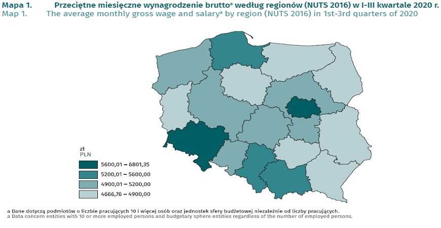 В стране уровень доходов сильно зависит от воеводства. Реальные доходы выше в Варшаве, а также в крупных городах, столицах воеводств. Восточная часть страны отличается более низкими зарплатами, чем запад и юг.