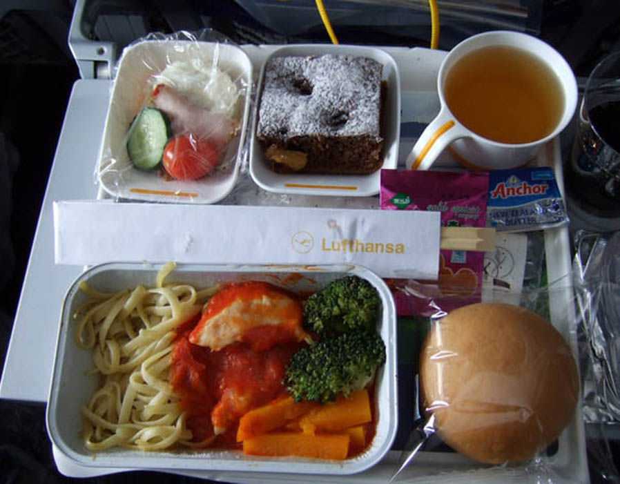 Путешествуя эконом-классом, авиаперевозчик Lufthansa бесплатно предложит безалкогольные коктейли и алкогольные напитки. Вы можете заказать обед из трех блюд (горячее, салат, десерт), чай, кофе или дижестив. На продолжительных маршрутах дополнительно приносят закуски.