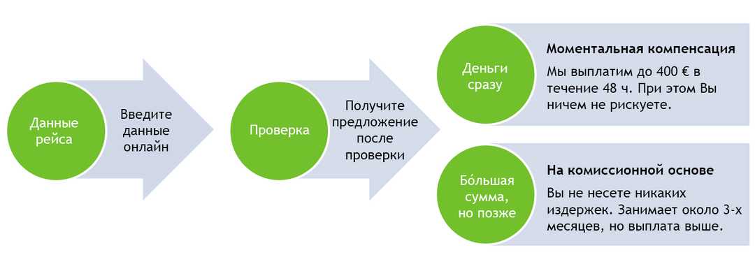 - Выплата сразу — мы выкупим Ваше требование, Вы сразу получите деньги, и для Вас дело в шляпе. Даже если потом мы потерпим неудачу при взыскании долгов требования с авиакомпании, Вы все равно получаете выплату. Это самый быстрый вариант и с наименьшим риском для Вас.