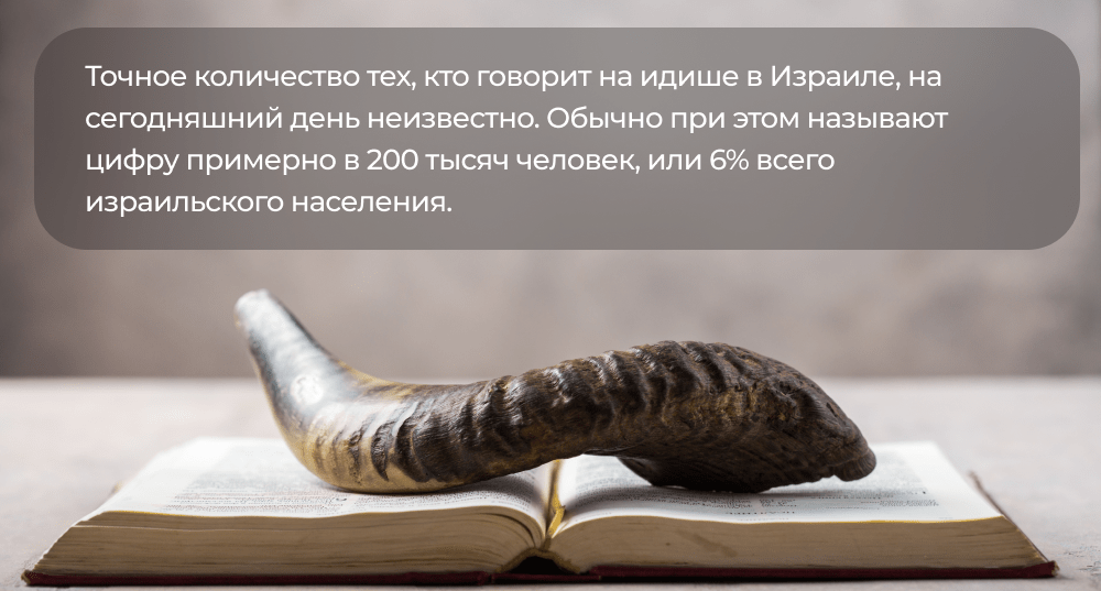 Идиш отличается очень мелодичным звучанием. Его интонации используются в современном иврите в их первозданном виде. Услышать идиш можно в религиозных районах Иерусалима, особенно рядом с хедерами – религиозными начальными школами.