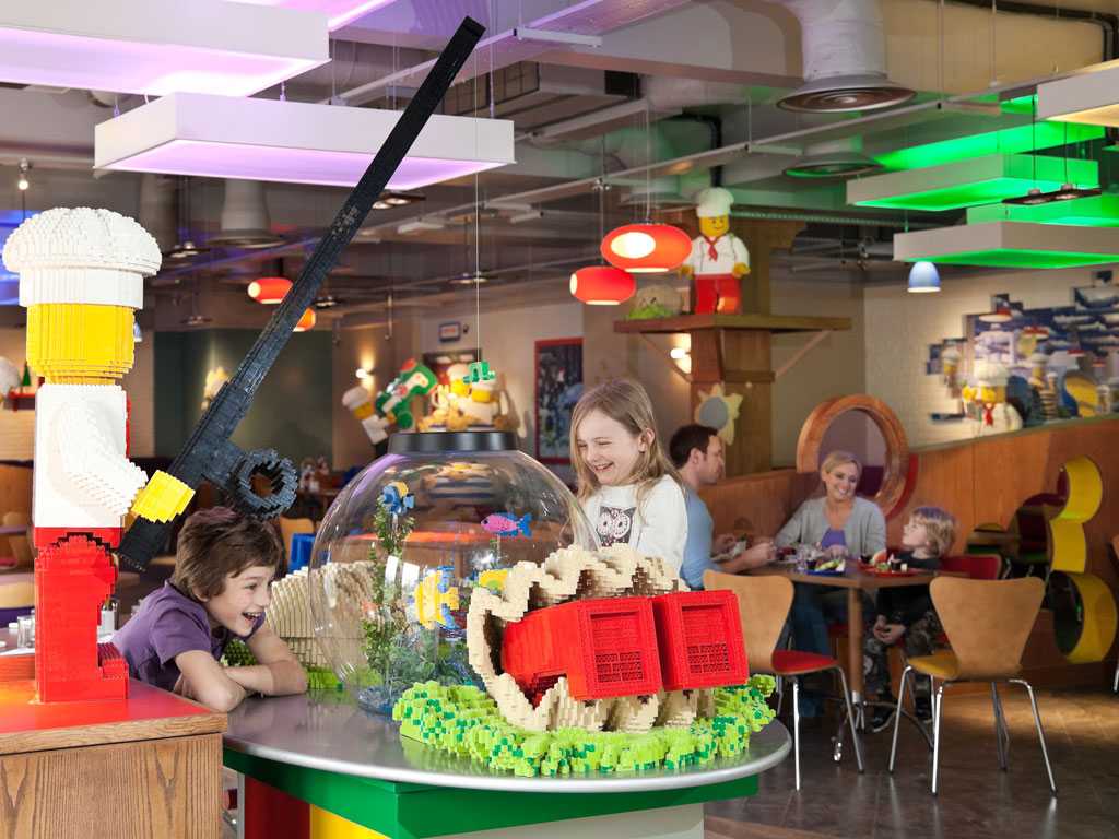 Остановиться можно в Леголенд-отеле который находится рядом с парком развлечений.