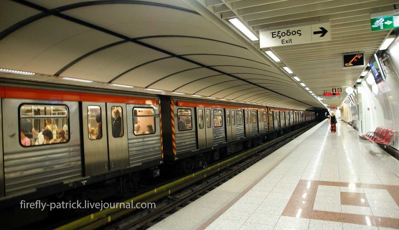 Если в Афины Вы прилетаете в дневное время, тогда наиболее удобным из всех видов общественного транспорта станет метро. С центром греческой столицы аэропорт Афин соединен синей веткой метро. Всего веток три: зеленая (1), красная (2) и синяя (3). В планах строительство четвертой ветки – желтой. Афинское метро работает с 06:30 до 23:30 (посмотреть расписание можно здесь). Стоимость проезда – 10 евро. Время в пути составит примерно 1 час. Вход в метро расположен у выхода 2 из здания аэропорта. Заблудиться не получиться: следуйте указателям «To trains» и Вы на месте. Поезда ходят часто, каждые 5-10 минут. Билеты продаются на станции.