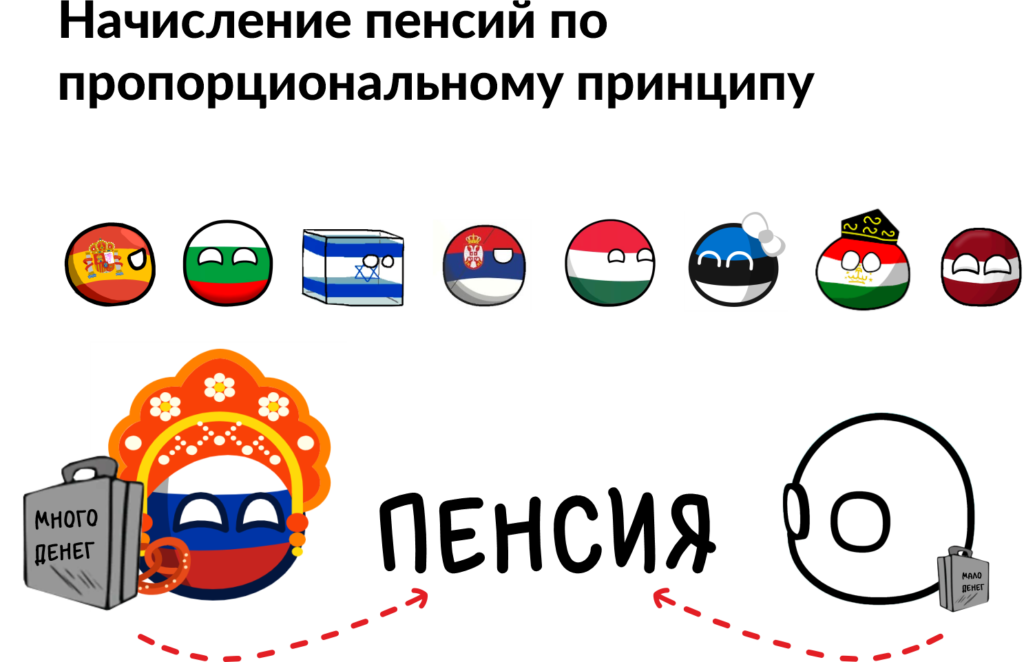 С рядом стран у России есть соглашение о выплате пенсий по принципу пропорциональности. Это значит, что каждое государство делает выплаты только за стаж, отработанный на его территории. Принцип схож с тем, что происходит между странами-членами ЕАЭС, только здесь речь идет о двух государствах. Такие договоренности есть с Испанией, Болгарией, Израилем, Сербией, Венгрией, Эстонией.