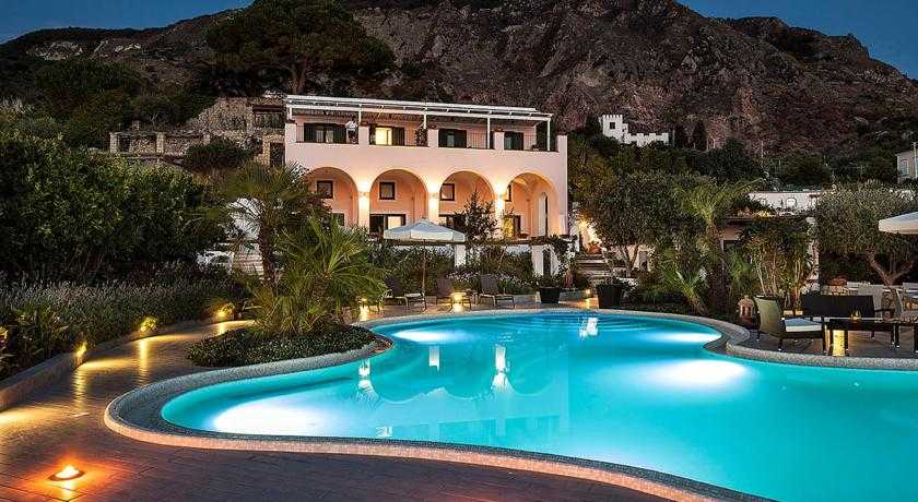 Отель с мировым именем Grand Hotel Excelsior приглашает гостей насладиться необыкновенными видами. Балконы и террасы номеров выходят на море или сад. Отель расположен в дворянском особняке. Номера высшей категории, бассейны, оздоровительный центр – все для гостей. Для тех, кто привык держать себя в форме открыт фитнес-центр. Из отеля за 10 минут можно дойти до одной из главных достопримечательностей острова – Арагонского замка.
